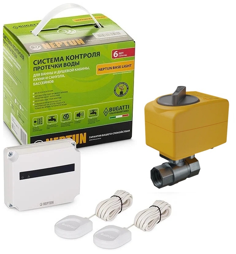 Система контроля протечки воды Neptun Base Light предназначена для своевременного обнаружения и локализации протечек воды в системе водоснабжения жилых домов, коттеджей, офисных зданий, магазинов. Основное отличие от других систем — один кран в комплекте. Система заблокирует подачу воды до устранения причин протечки и проинформирует о возникшей аварии звуковым и световым сигналами.